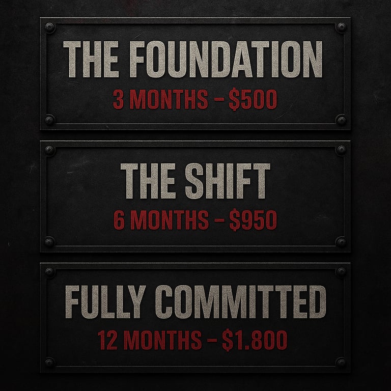 This is a 1 on 1 guided system that helps you shed fat, build lean muscle, and forge a bulletproof mindset no matter how busy you are.